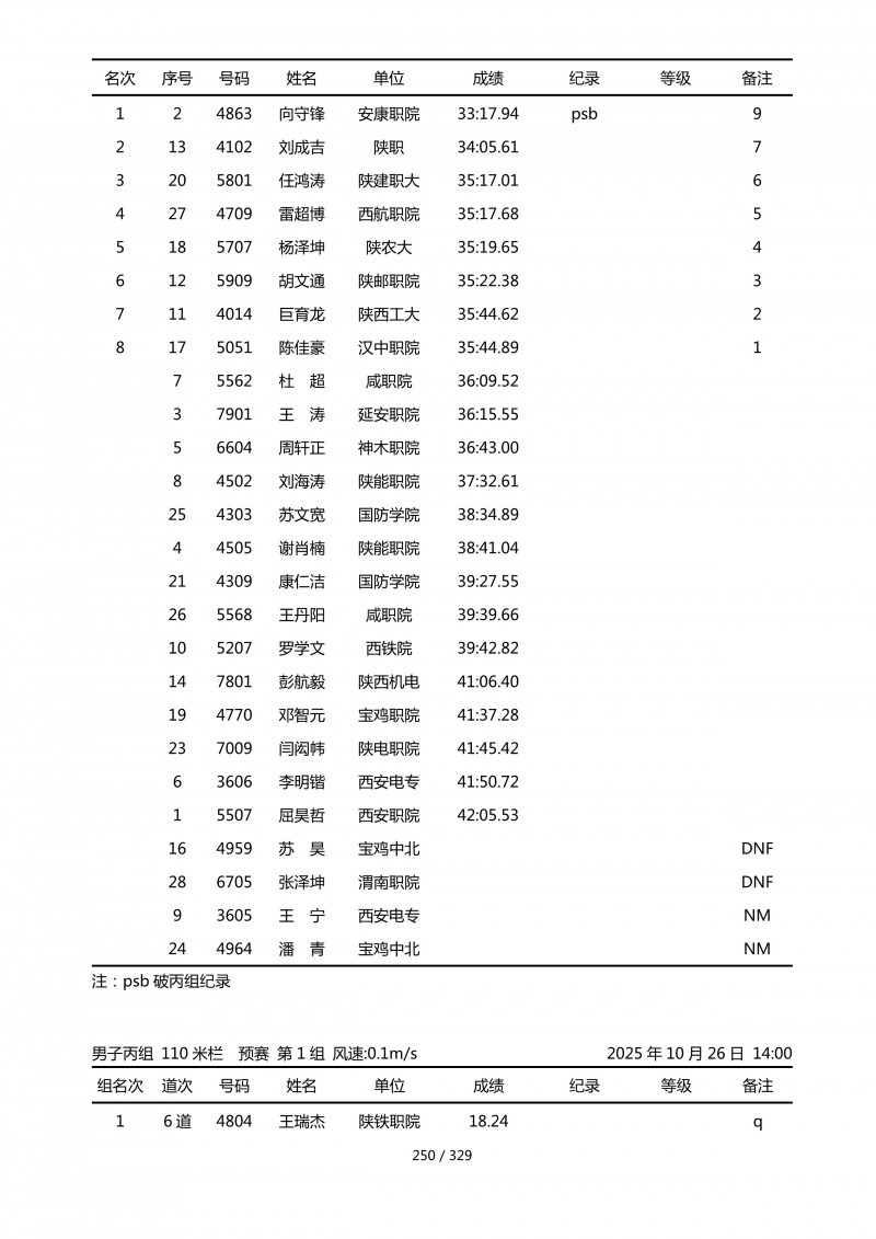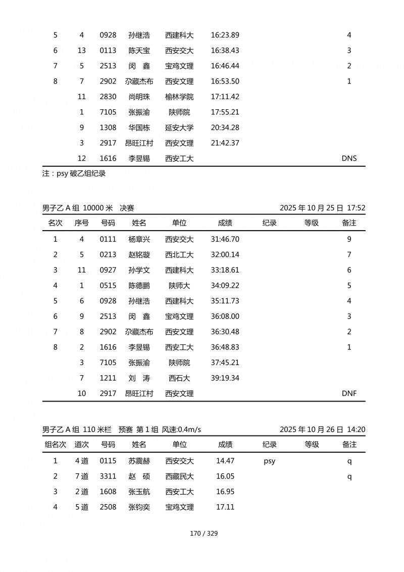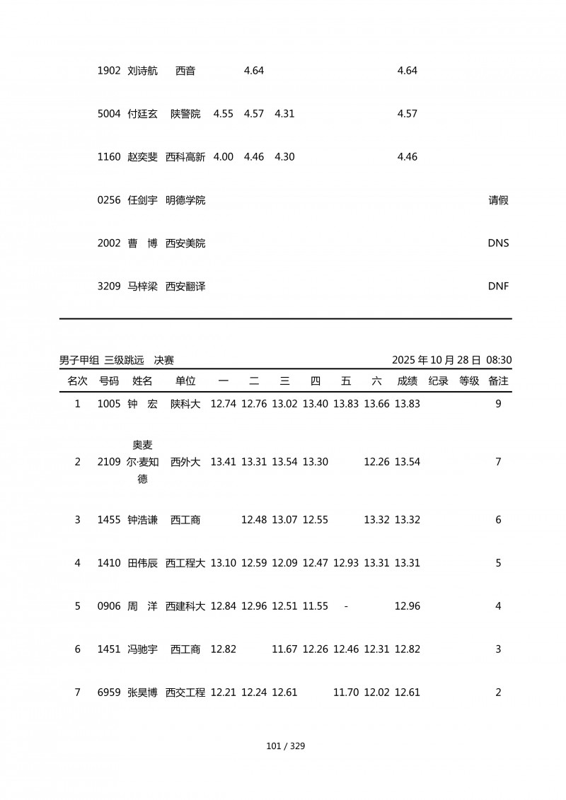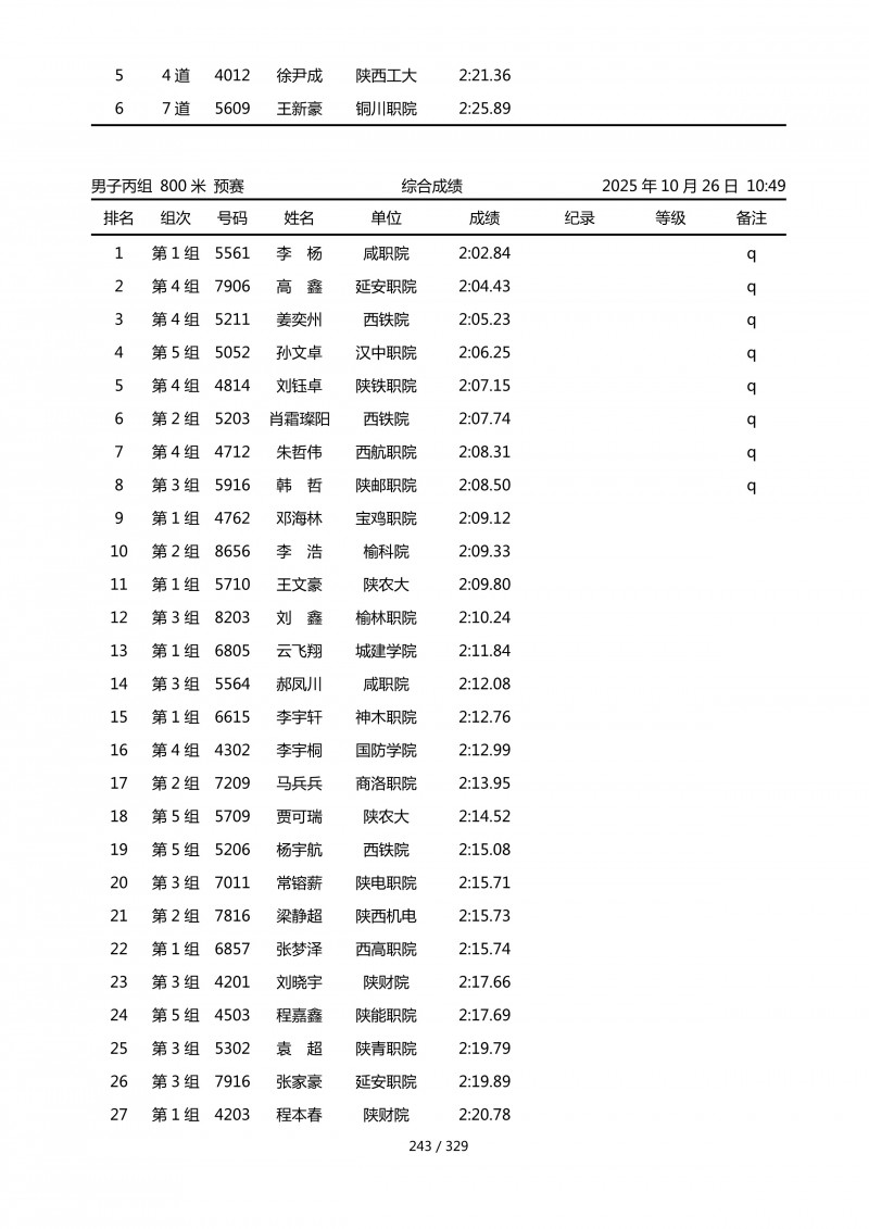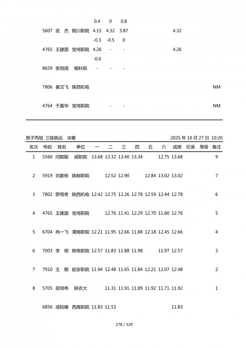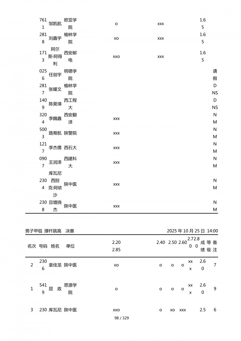陕西省第四十四届大学生田径运动会成绩册.pdf