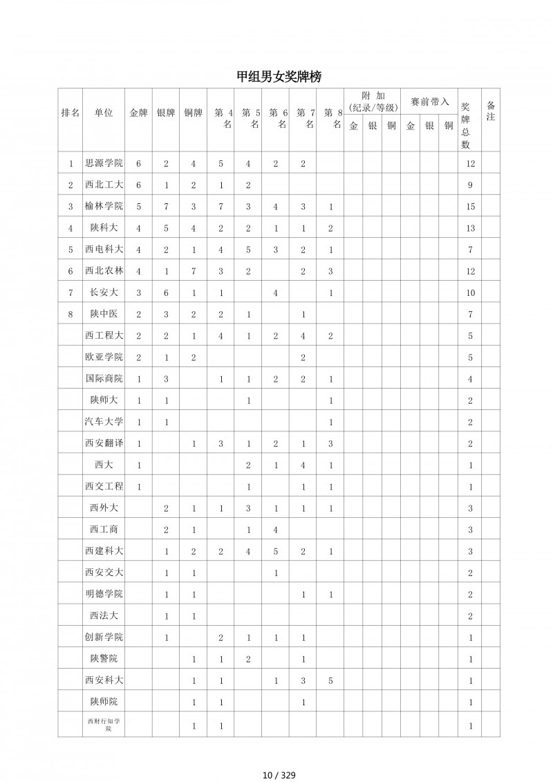 2025年陕西省第二十九届大学生乒乓球锦标赛暨“校长杯”比赛成绩册