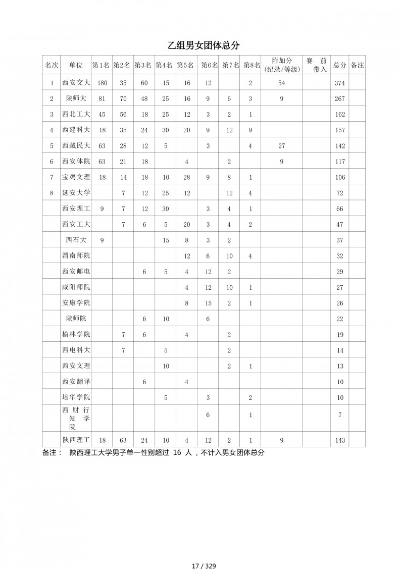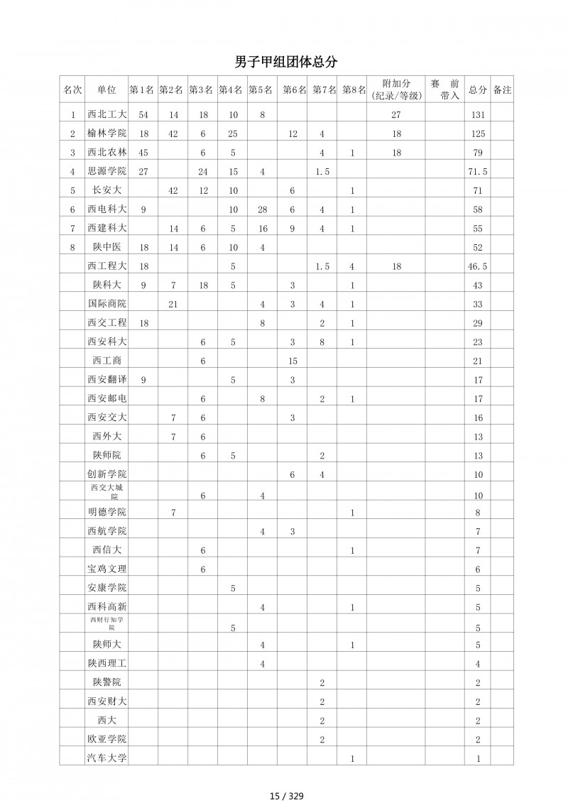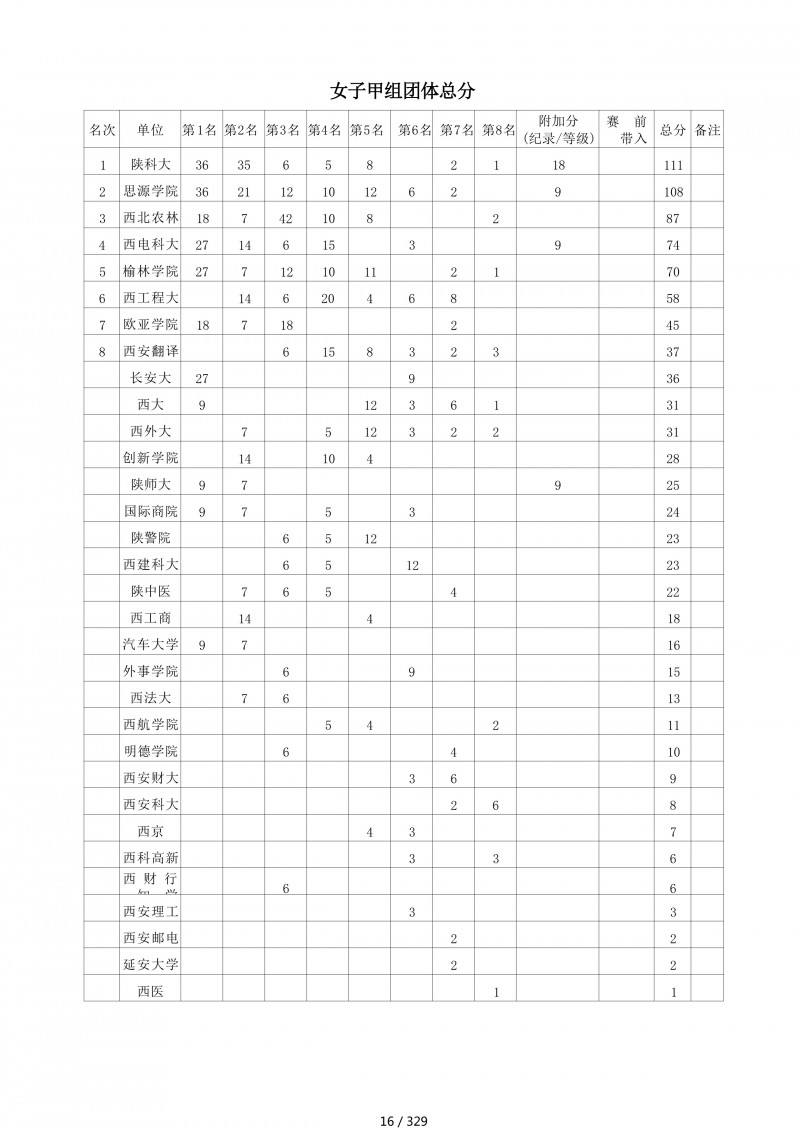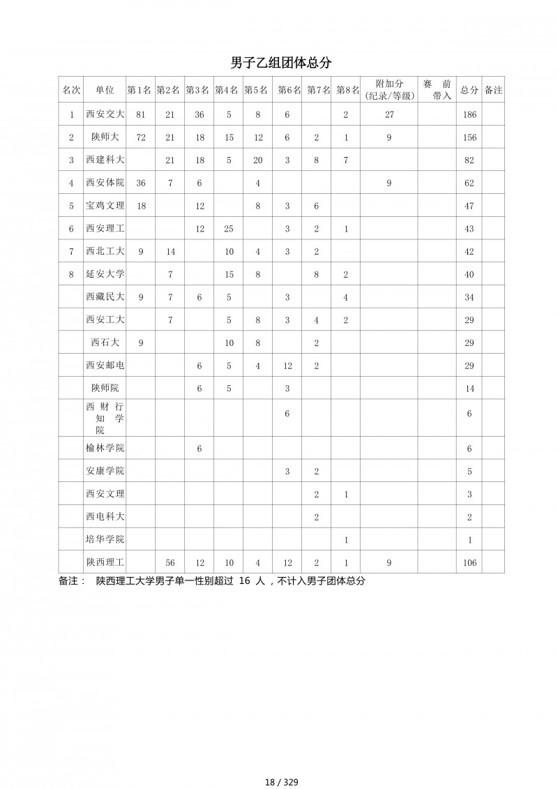 2018陕西大学生羽毛球赛暨校长杯成绩册