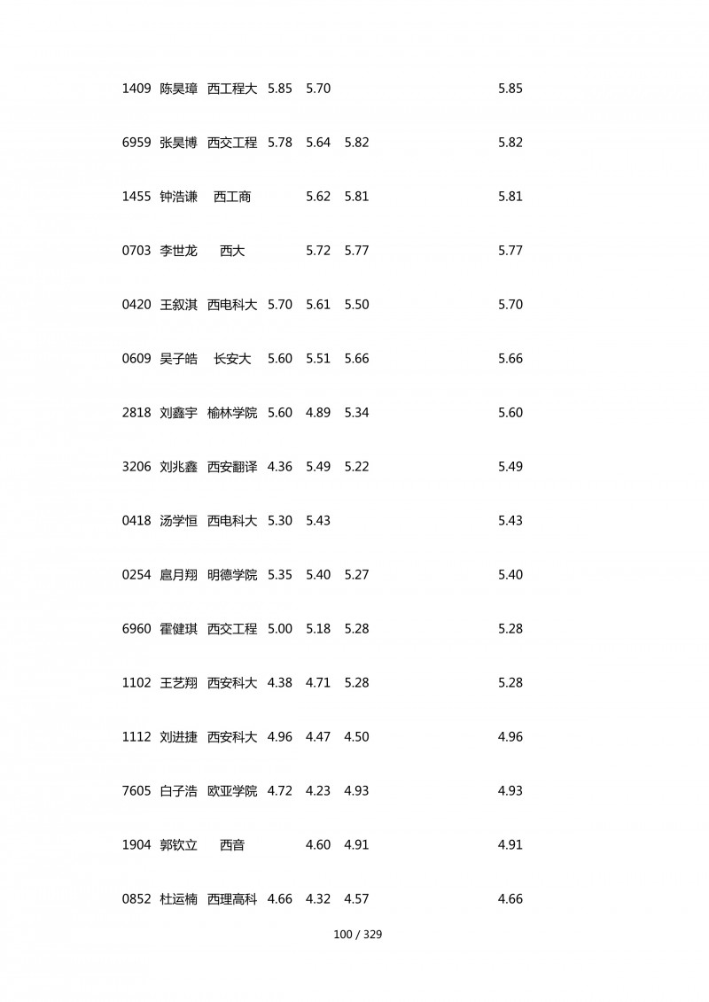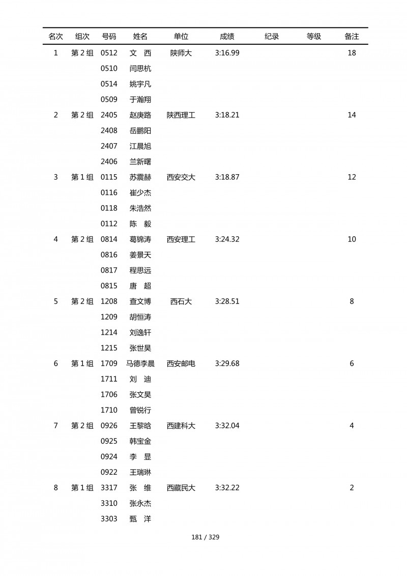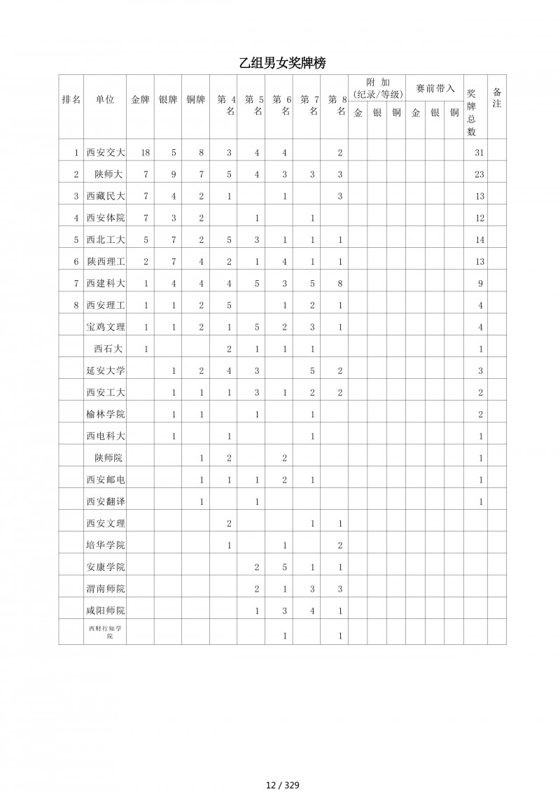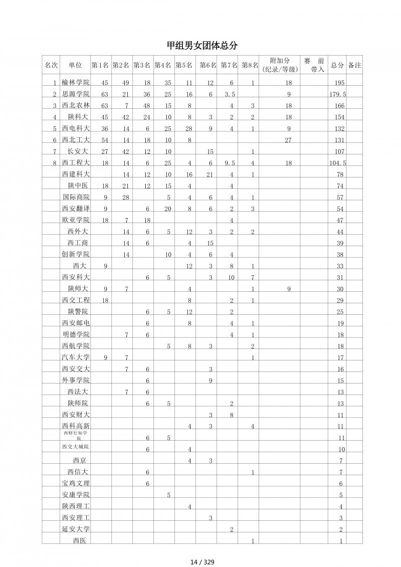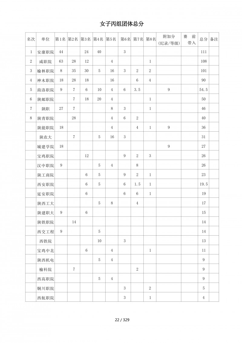 2018陕西大学生羽毛球赛暨校长杯成绩册