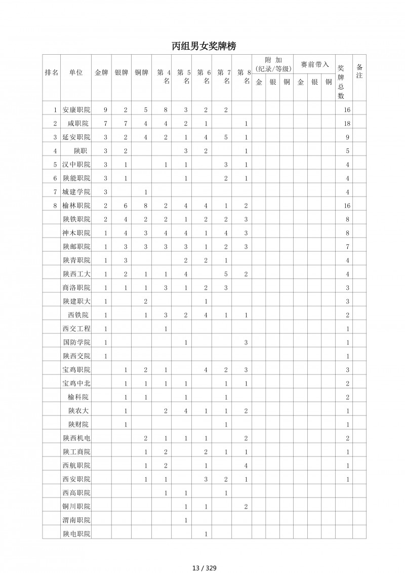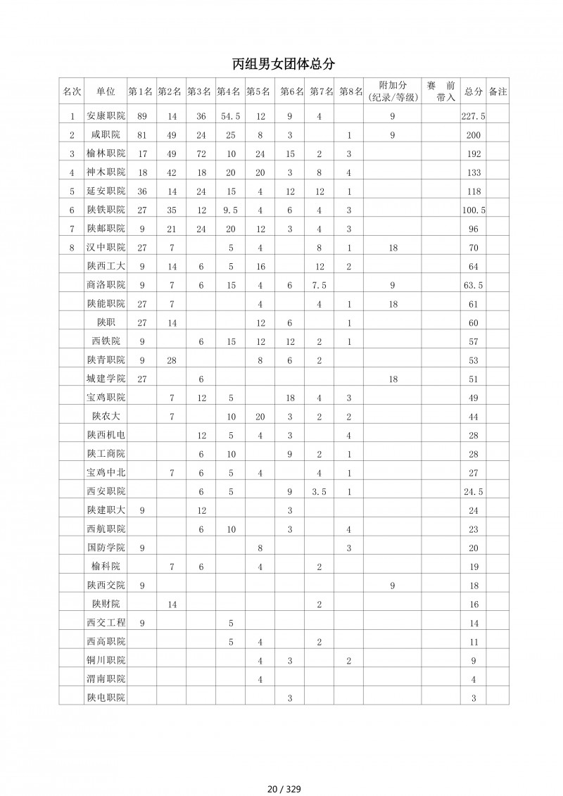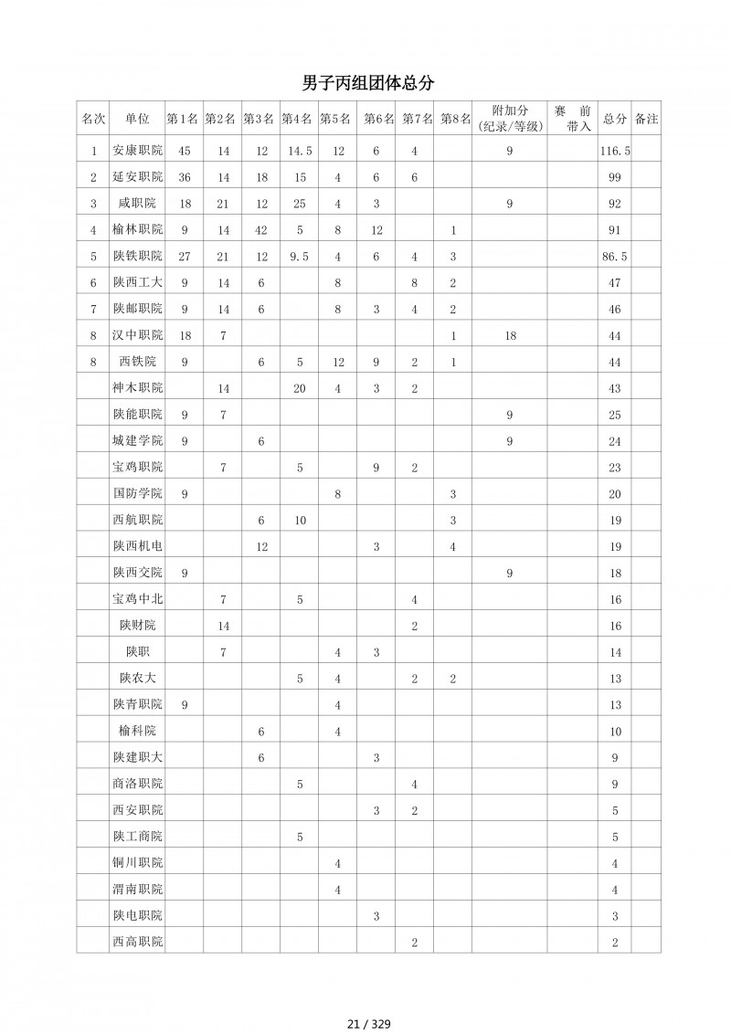 • 第二届陕西省“深圳川崎”大学生匹克球锦标赛暨”校长杯“比赛成绩册