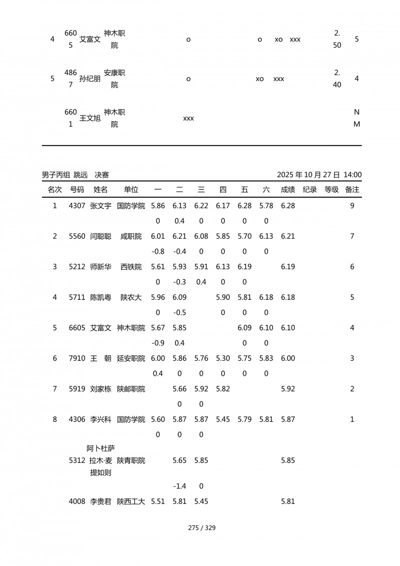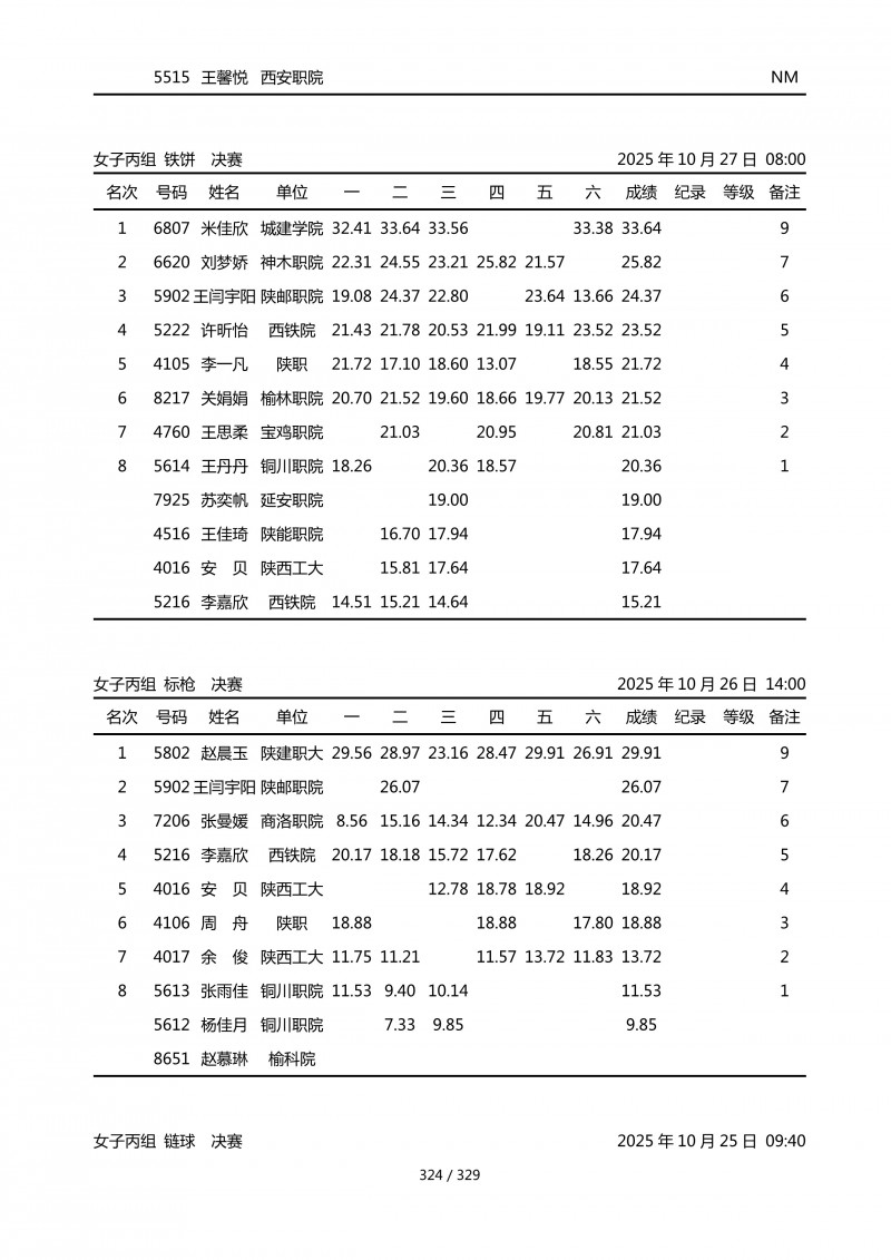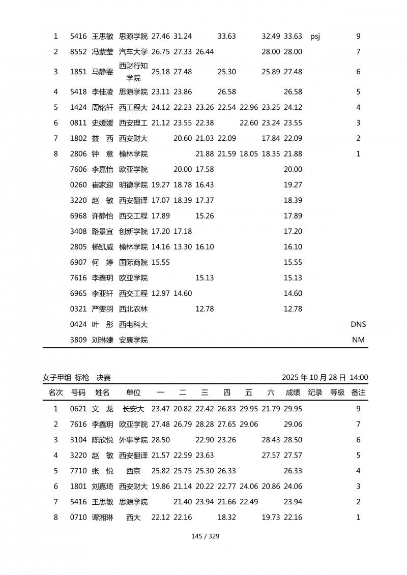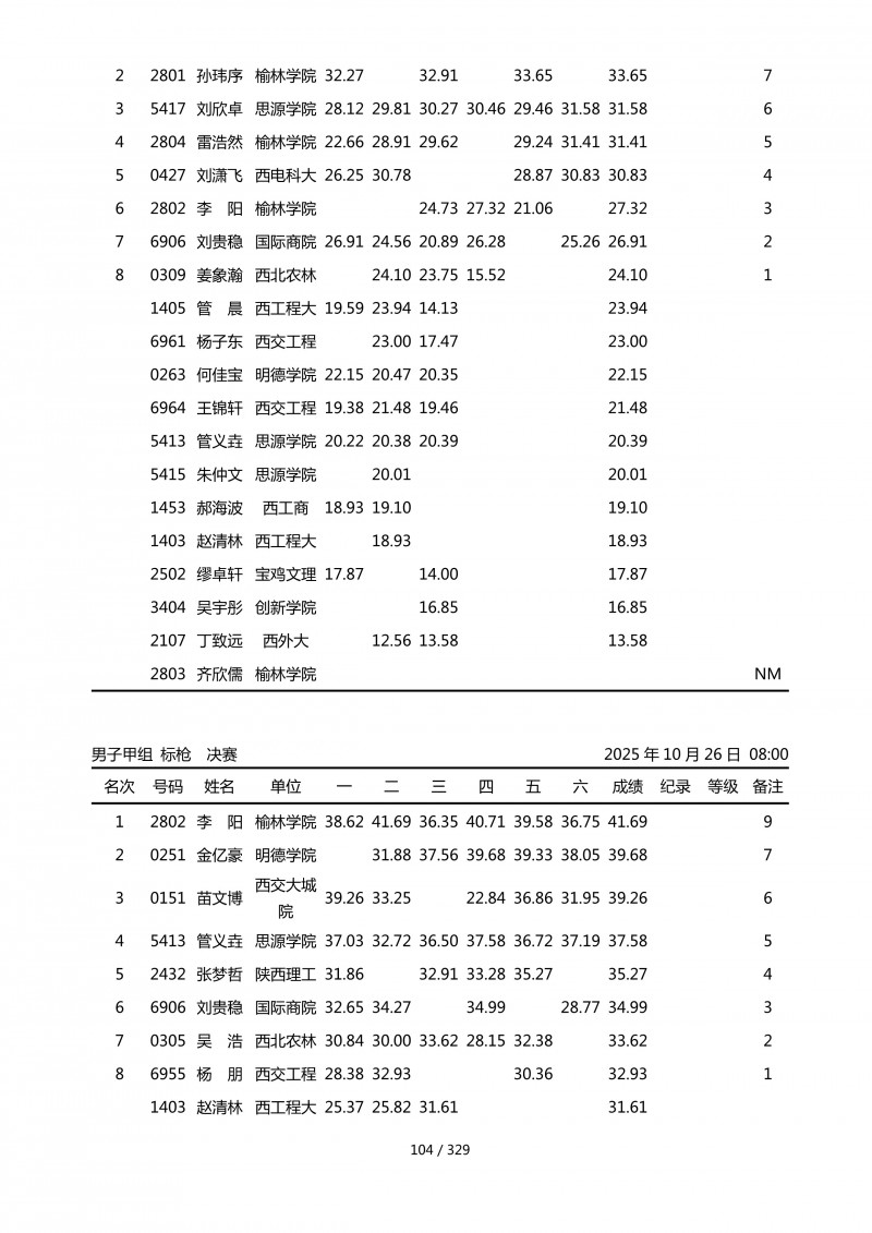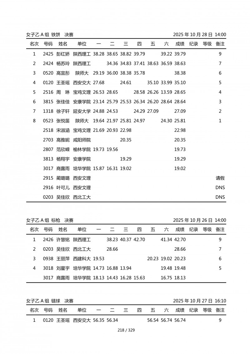 2025年第45届陕西省大学生排球锦标赛成绩册