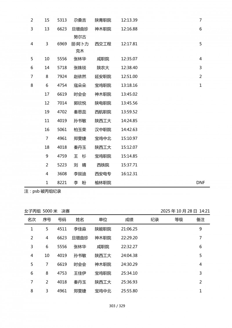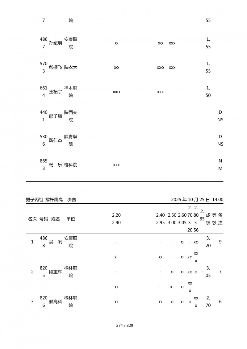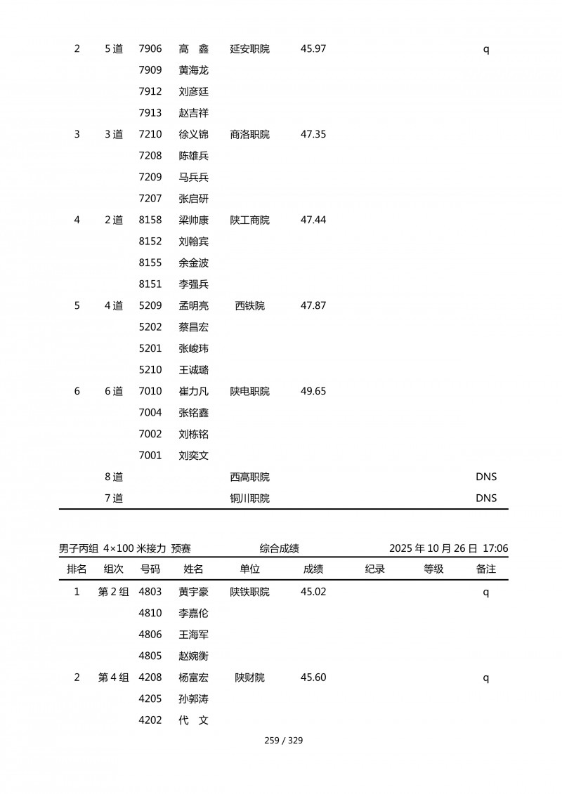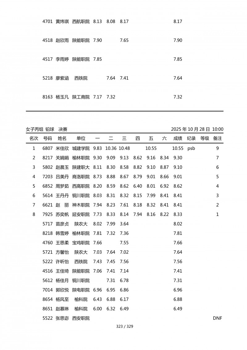 2025年第45届陕西省大学生排球锦标赛成绩册