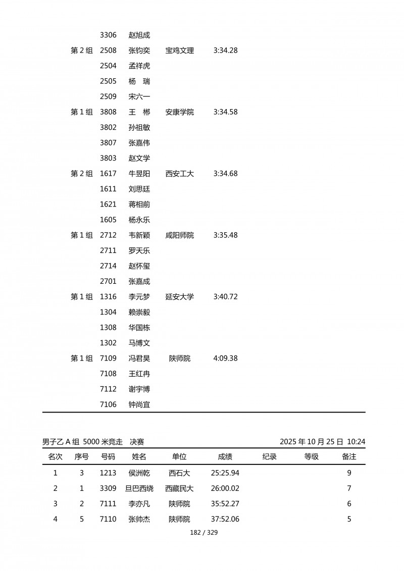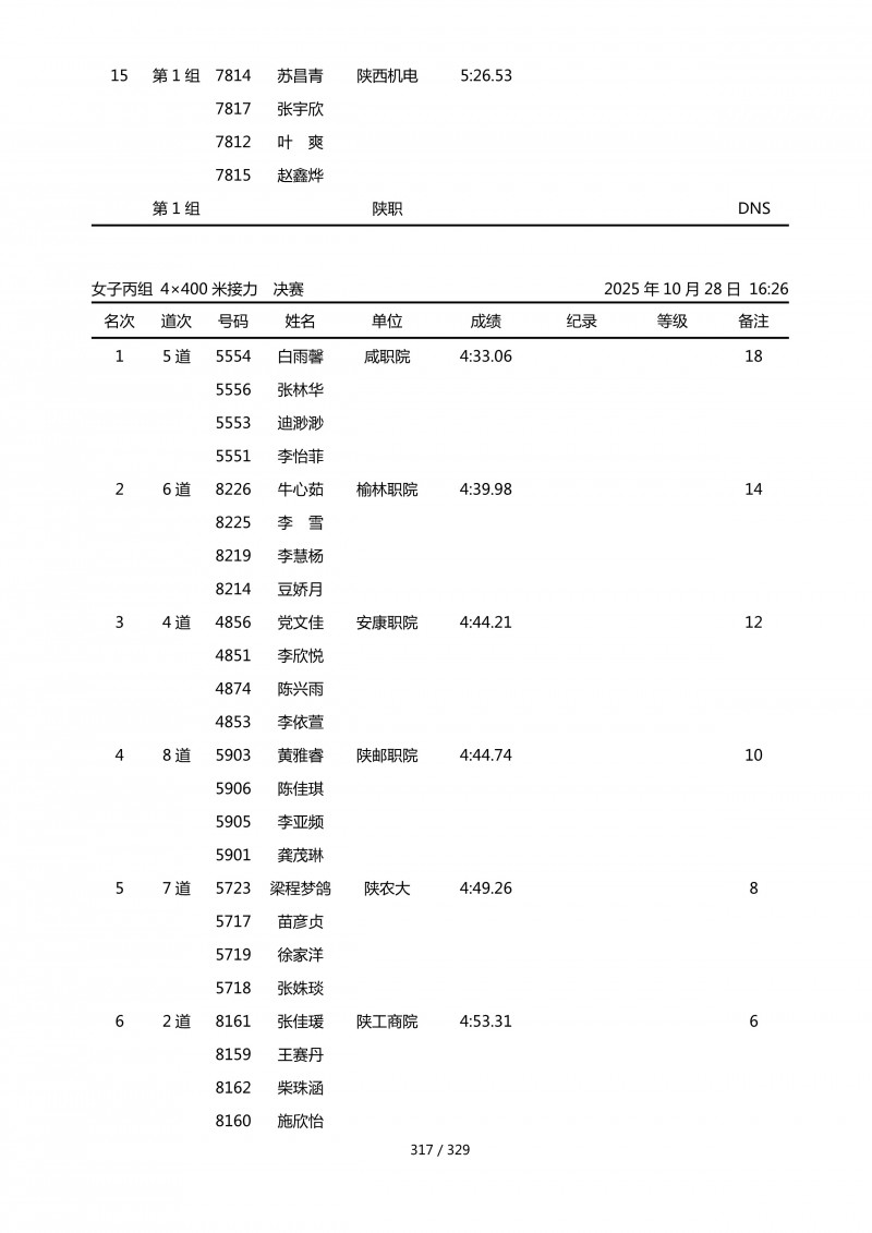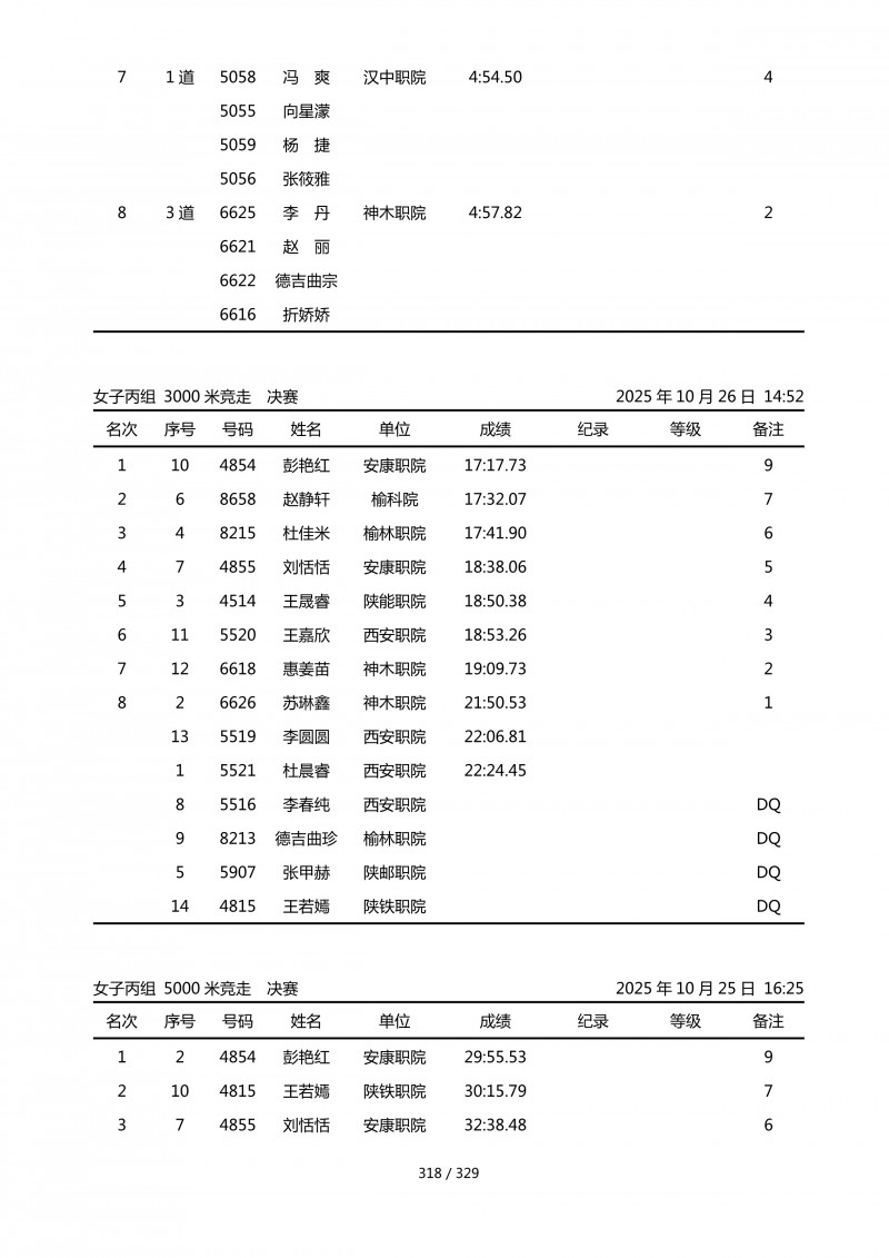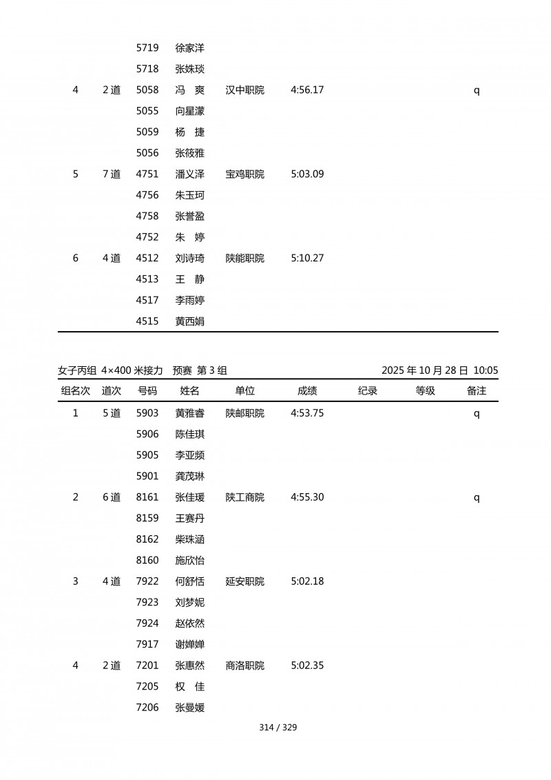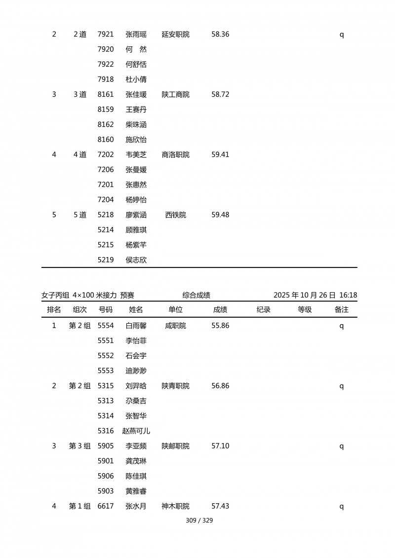 2025年第45届陕西省大学生排球锦标赛成绩册