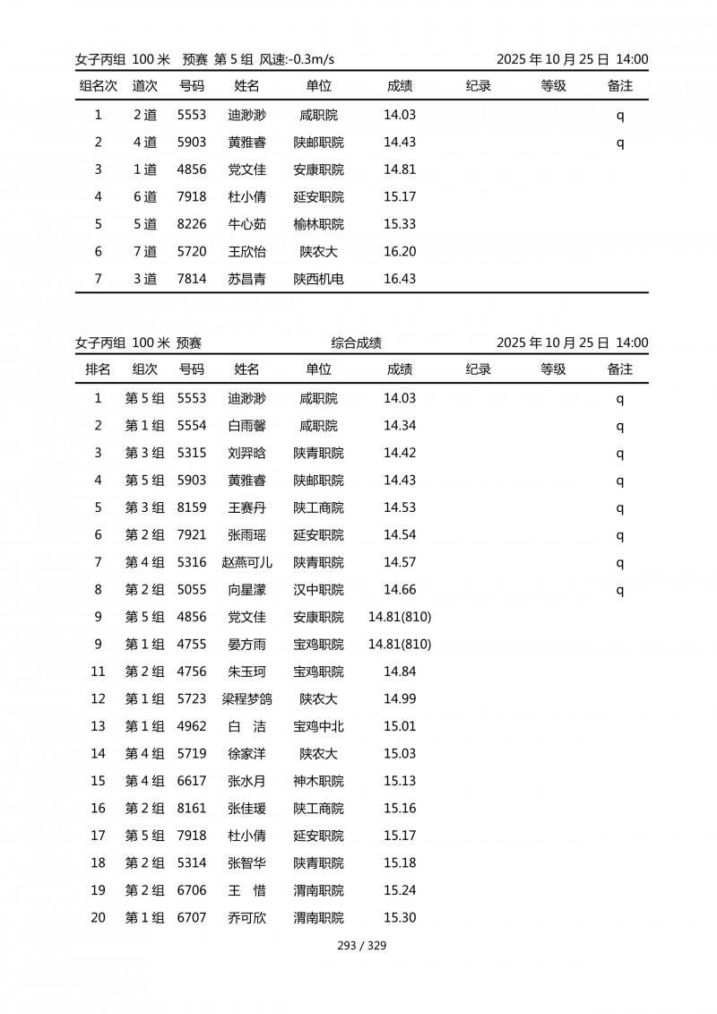 2025陕西省学生游泳锦标赛成绩册