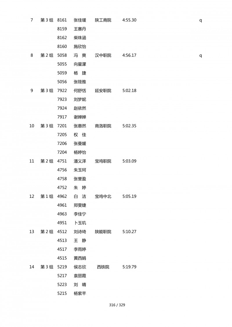 陕西省第五届大学生轮滑锦标赛成绩册