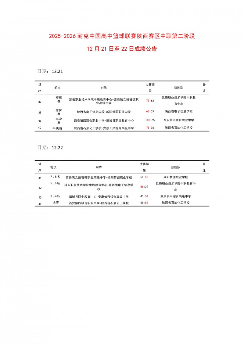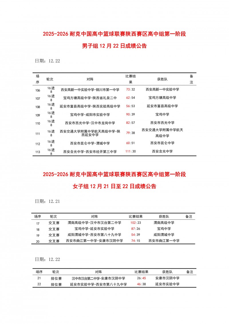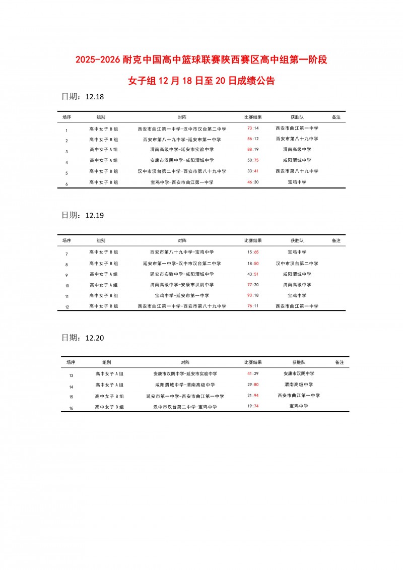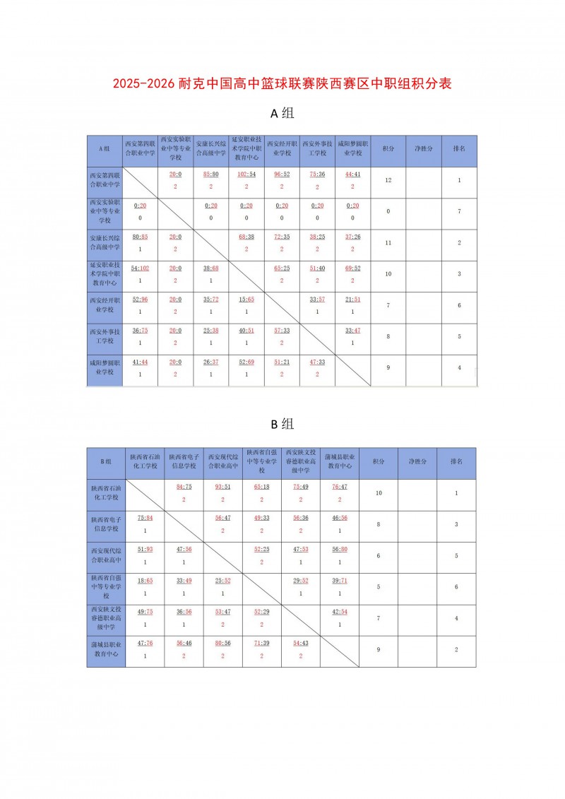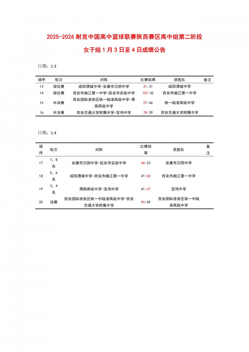2025-2026耐克中国高中篮球联赛陕西赛区成绩册