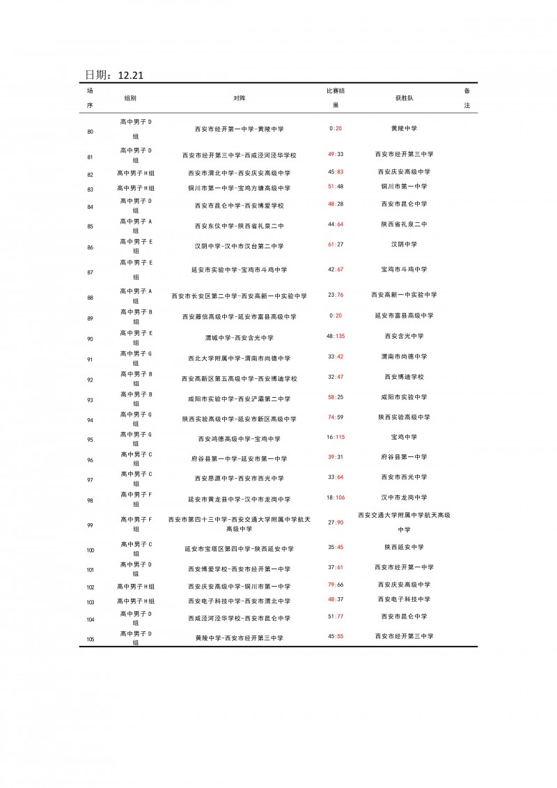 康师傅喝开水中国初中篮球联赛(陕西赛区)成绩册