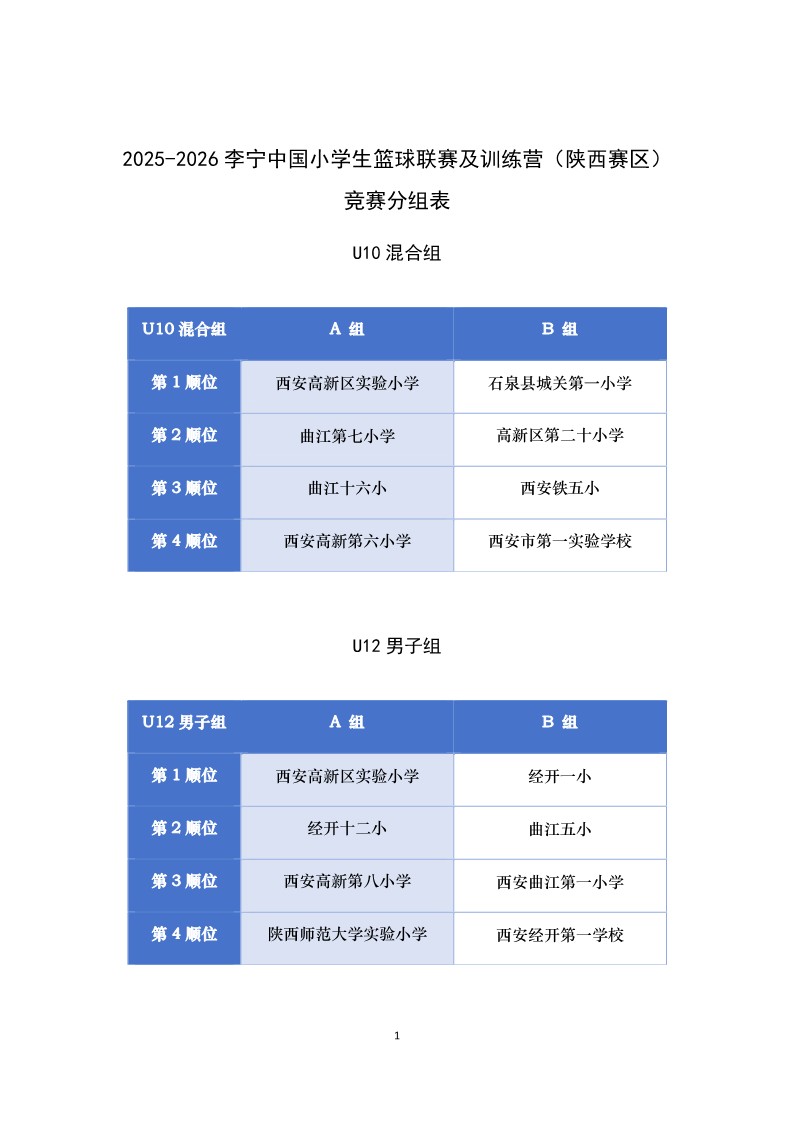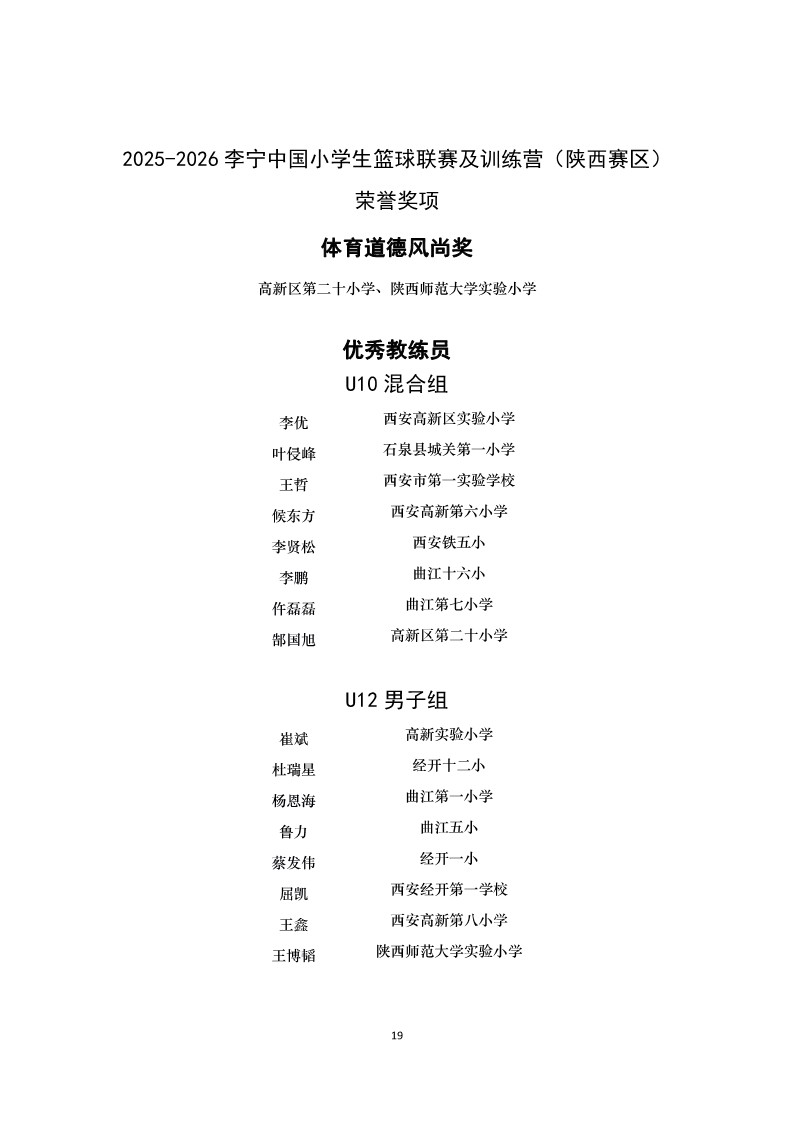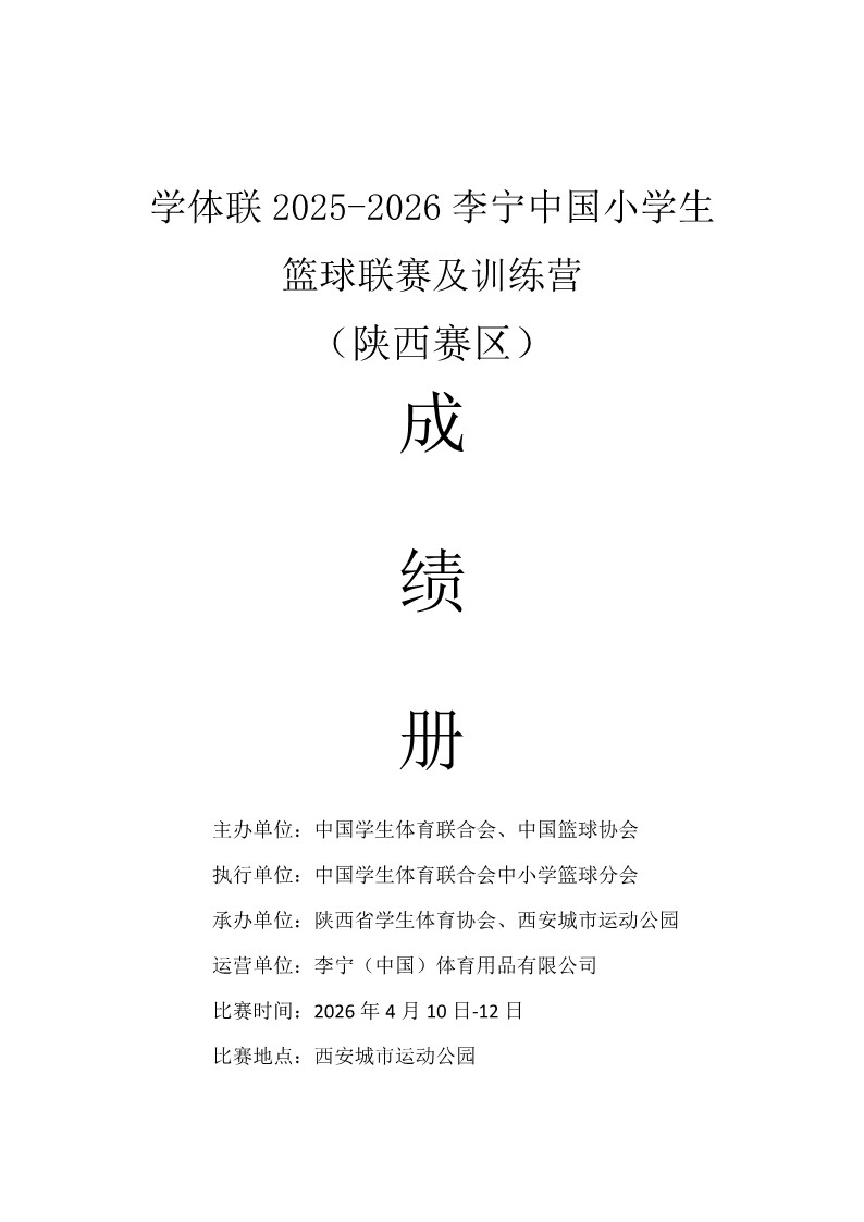 2025-2026年中国小学生篮球联赛(陕西赛区)成绩册