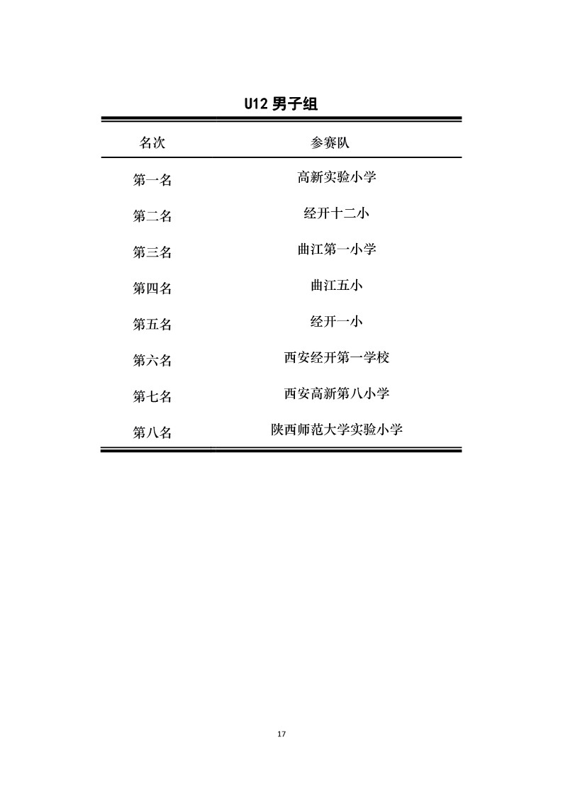 • 康师傅喝开水中国初中篮球联赛(陕西赛区)成绩册