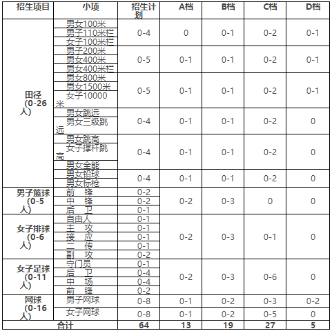 3.男子篮球、女子排球、女子足球项目:只招非国家篮管、排管、足管中心注册队员。排序原则:按测试成绩排序,择优入围。